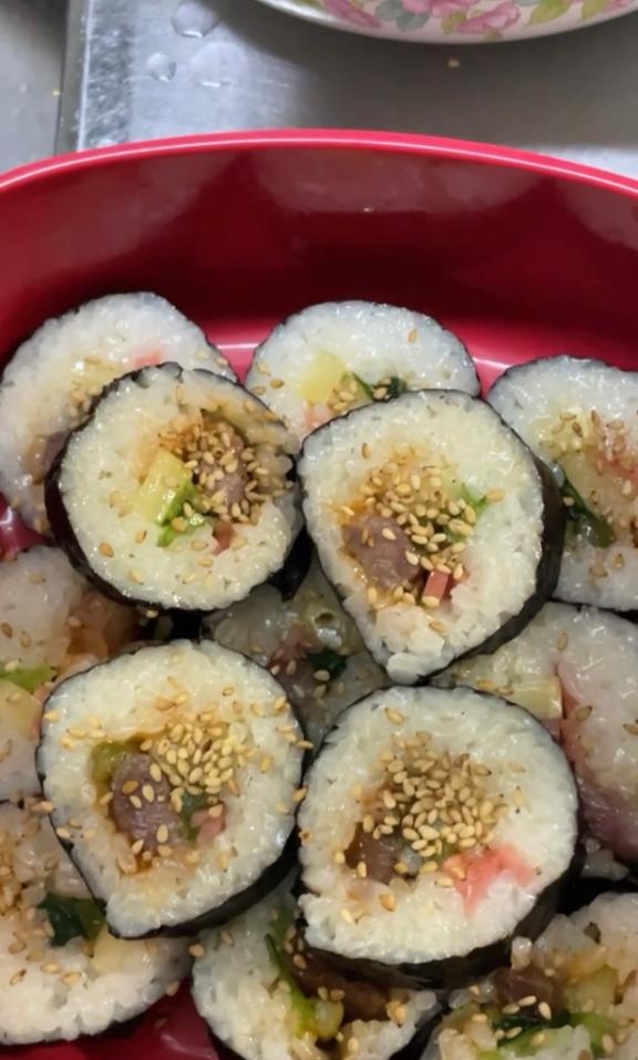 朝ごはんタイム🍚🍞今日は朝からキムパ作りました😊🍙ごま油…